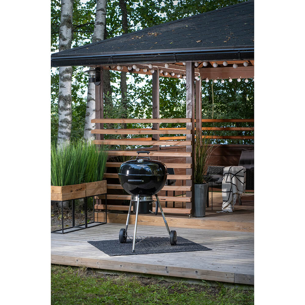 Grillen är försedd med värmeskyddat handtag på locket samt två robusta handtag på sidorna. Med två stora hjul kan grillen enkelt flyttas efter behov, oavsett om det är på altanen eller i trädgården.