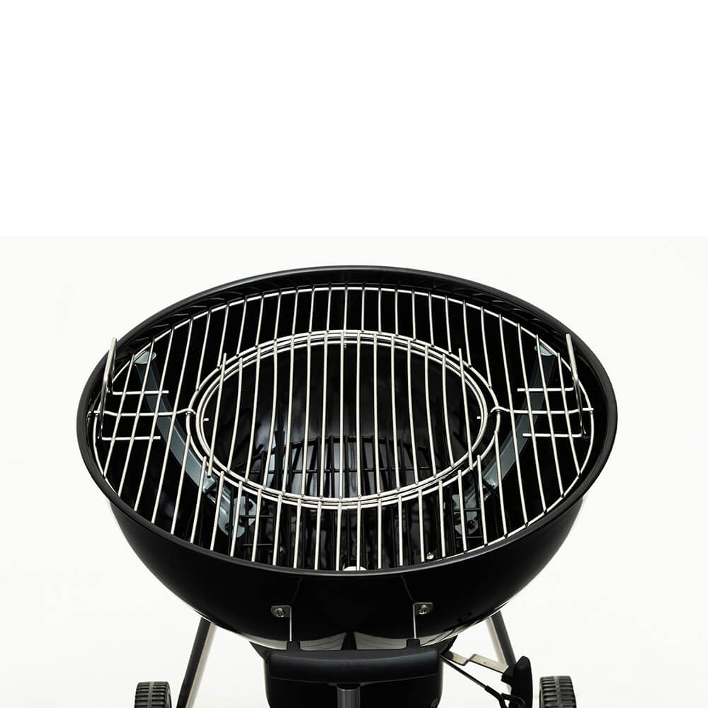 Det förkromade grillgallret ger jämn värmefördelning och är enkelt att rengöra. Kolgallret i emaljerad ståltråd håller värmen effektivt och bidrar till ett jämnt glödläge, vilket gör grillningen både smidig och pålitlig.