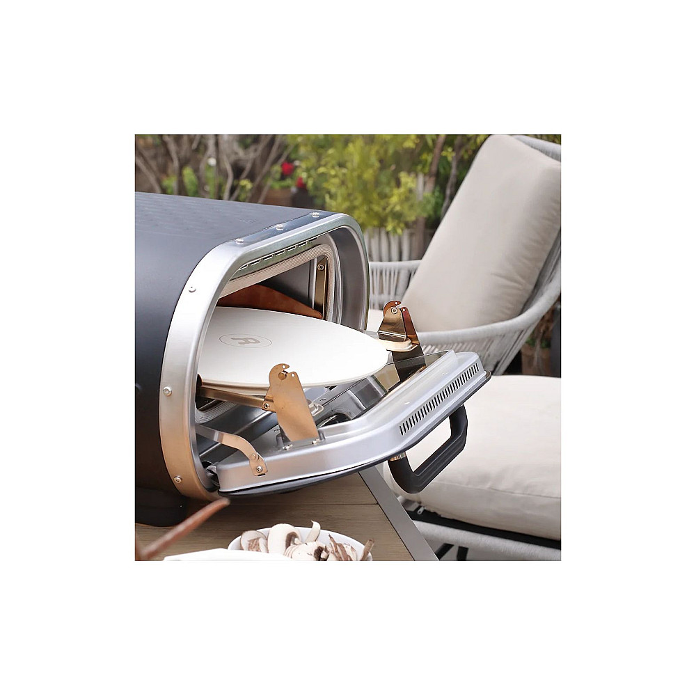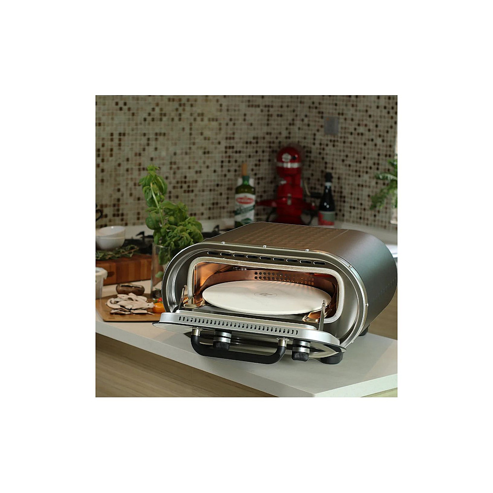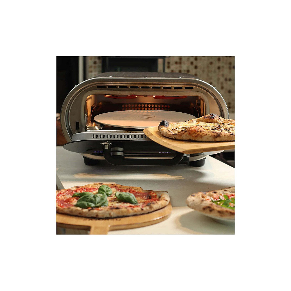 Roterande pizzasten för perfekt gräddning Pizzastenen har en generös storlek och roterar automatiskt under hela bakningen. Detta säkerställer ett jämnt resultat utan att du behöver vrida pizzan manuellt, vilket gör hela bakprocessen enklare och mer konsekvent.
