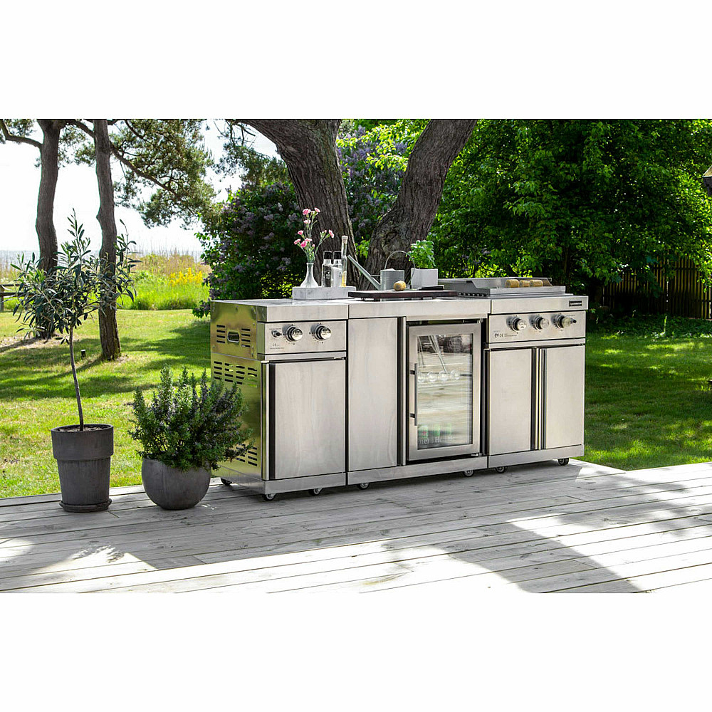 Elegant design i rostfritt stål. Modulen är tillverkad i högkvalitativt rostfritt stål 304SS med en modern och exklusiv finish som passar perfekt i ett stilrent utekök. Den genomtänkta designen gör att modulen smälter in naturligt tillsammans med övriga delar i Classic Line-serien.